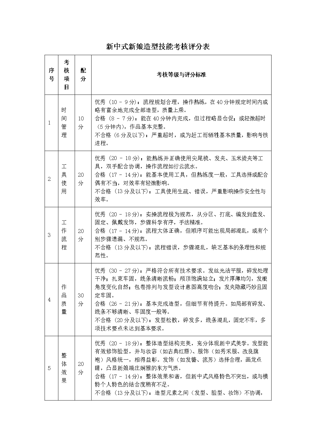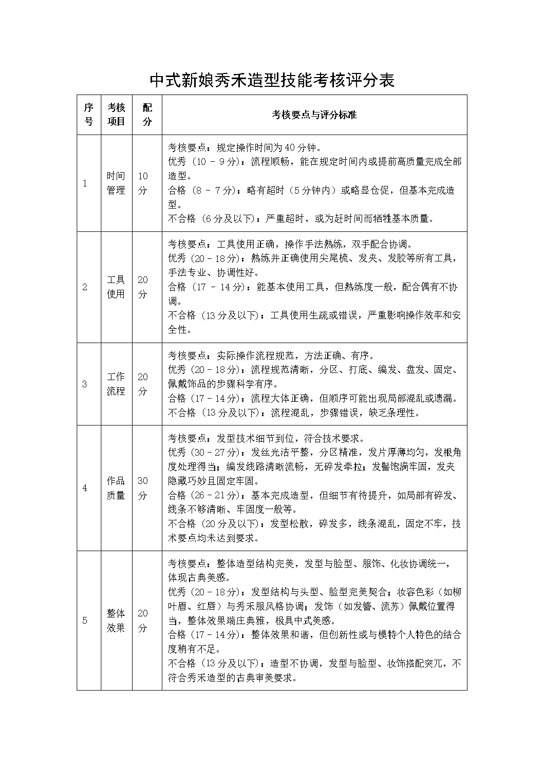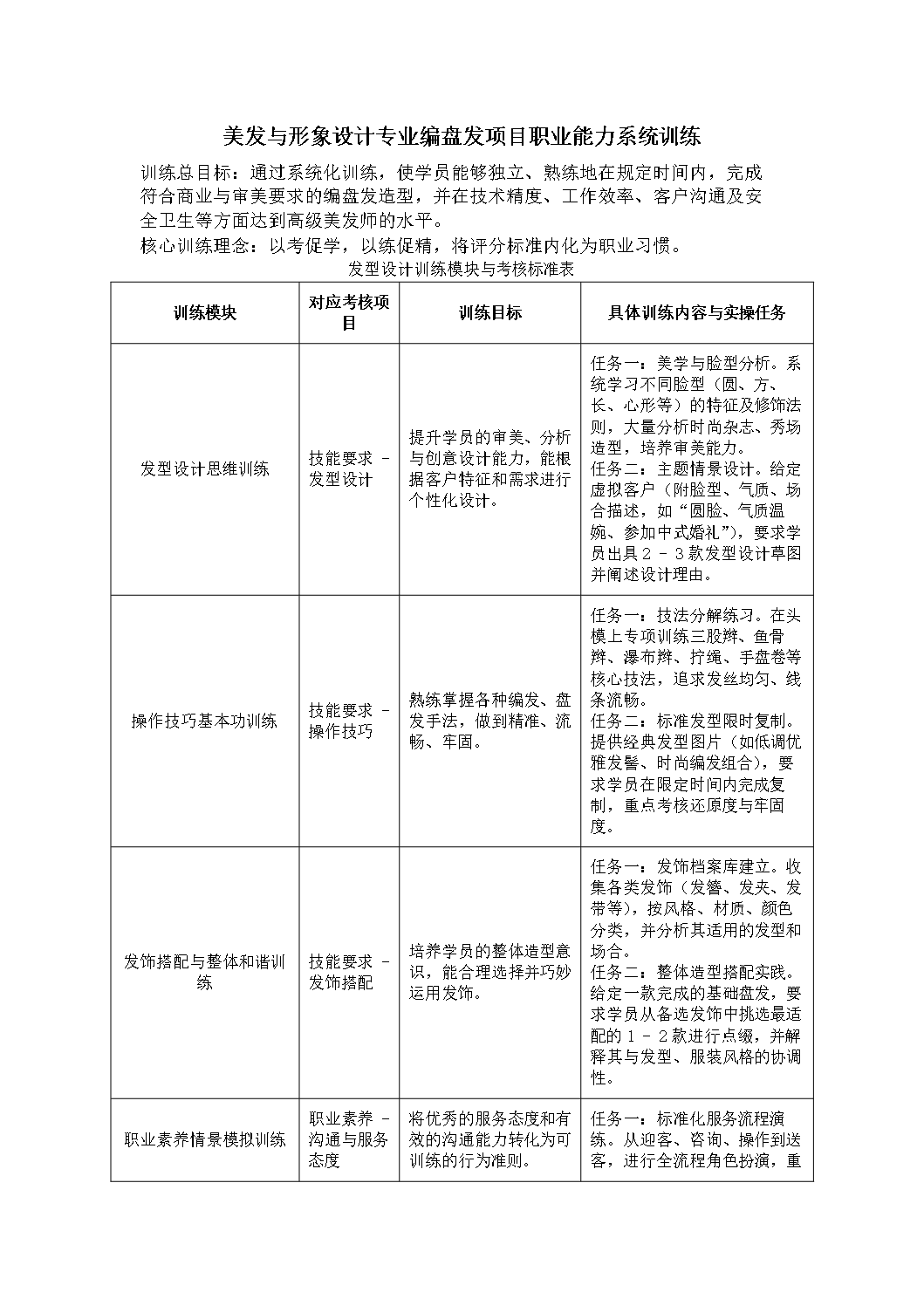 美发与形象设计专业编盘发项目职业能力考核标准表