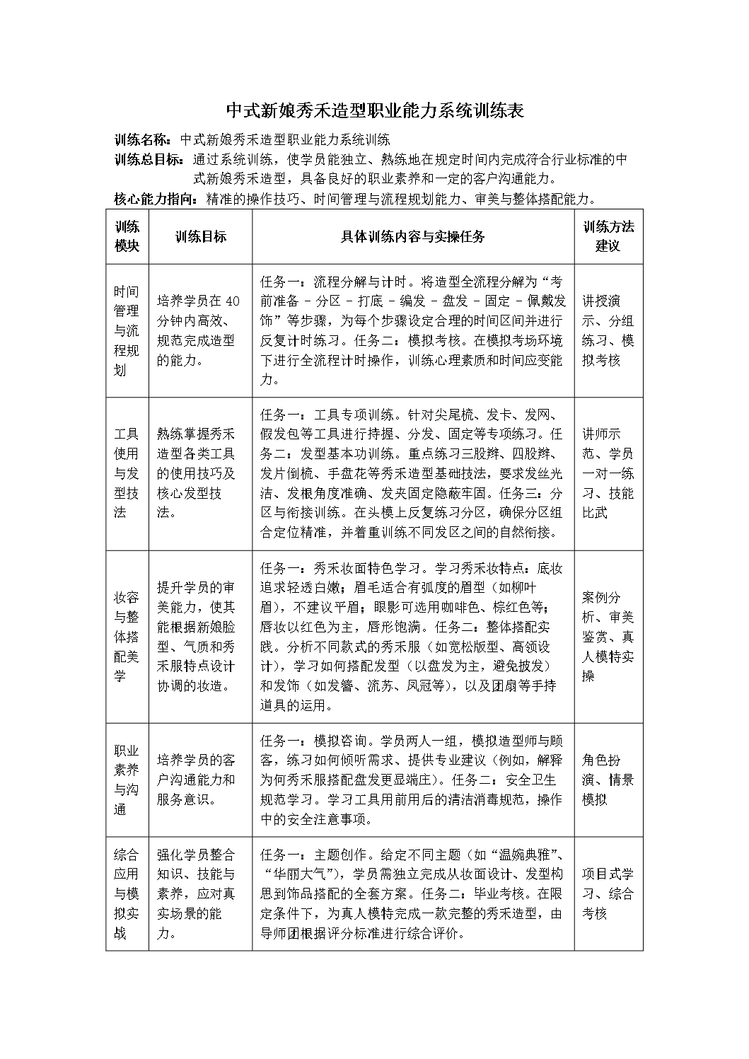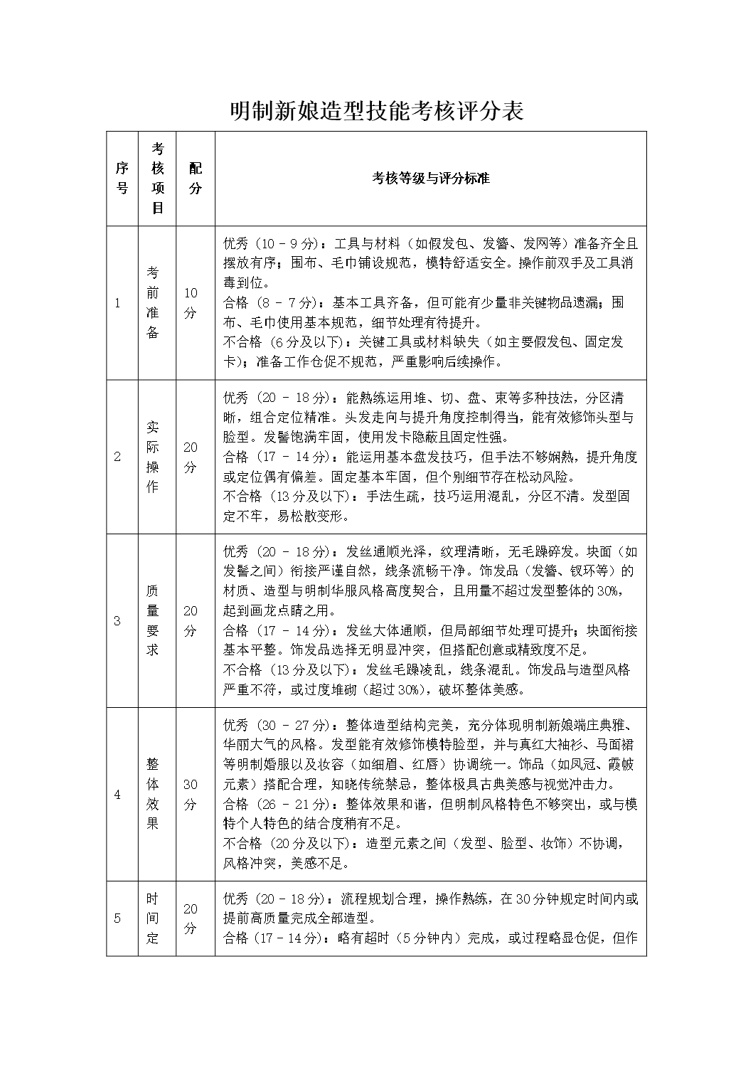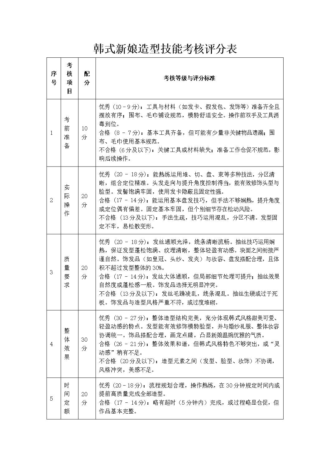 美发与形象设计专业编盘发项目职业能力考核标准表